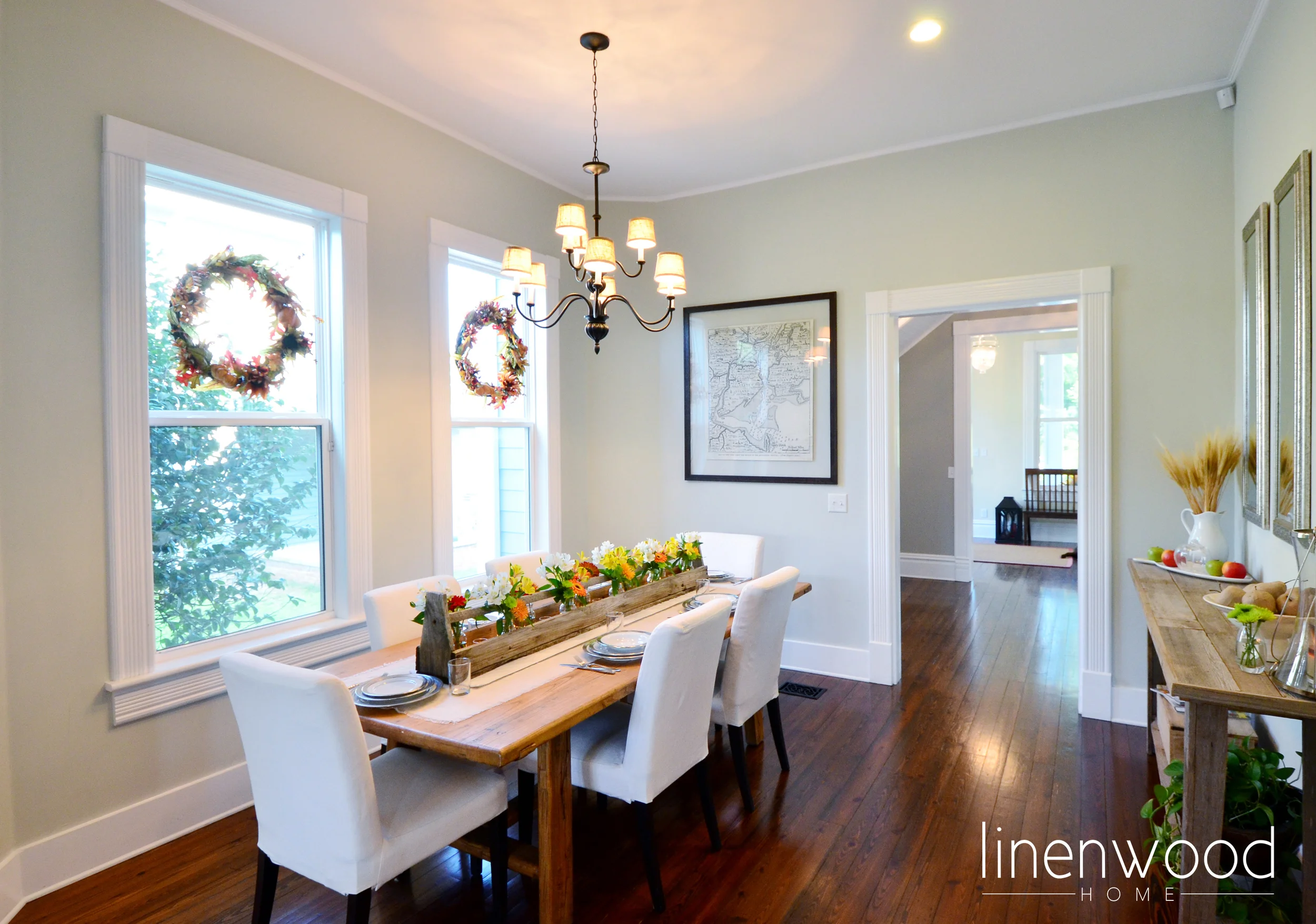 Oh the dining room, one of my favorite extensions of our kitchen. It's where we tell stories, gather with family, gather with old friends, and sometimes meet new friends. Our dining room is appropriately located in the center of our home.