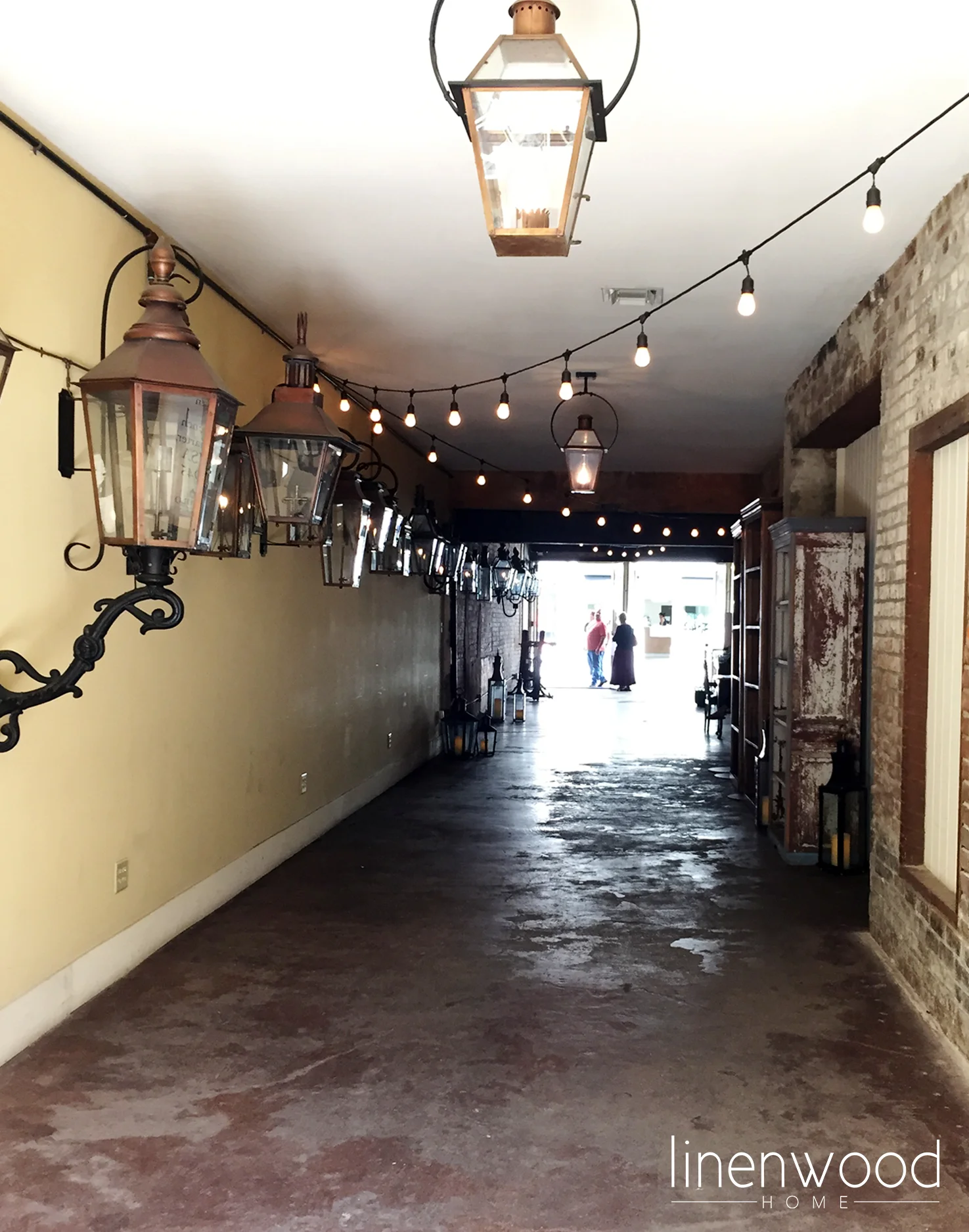 We slowly wandered through the breezeway, taking in the beauty of all the copper surrounding us. These are the gas lanterns I wanted, these are Bevolo. For those of you who might not know, Bevolo is the oldest and largest manufacturer of handmade, hand-riveted copper lanterns in the United States. And I have to say, they do top notch quality work!!