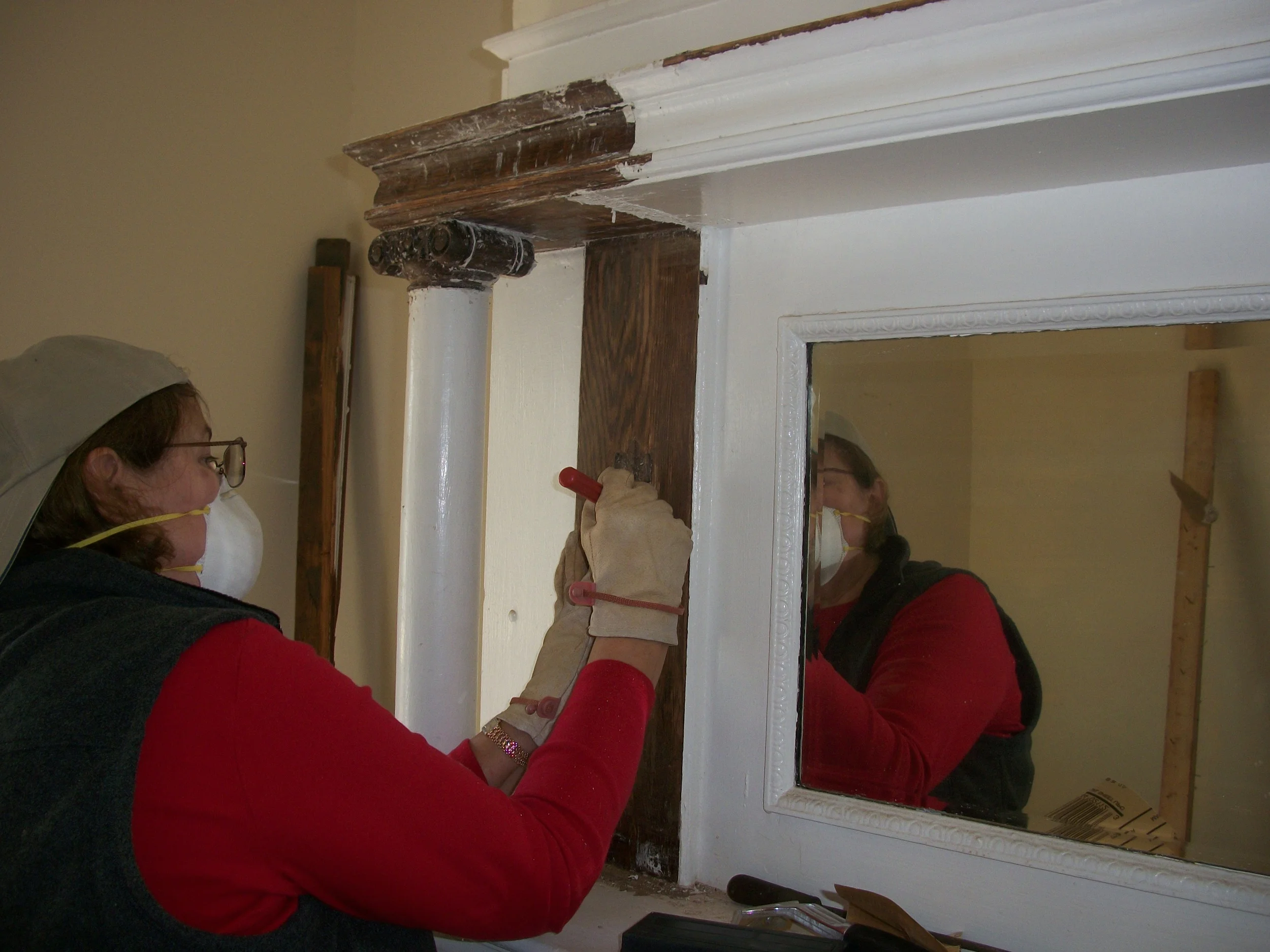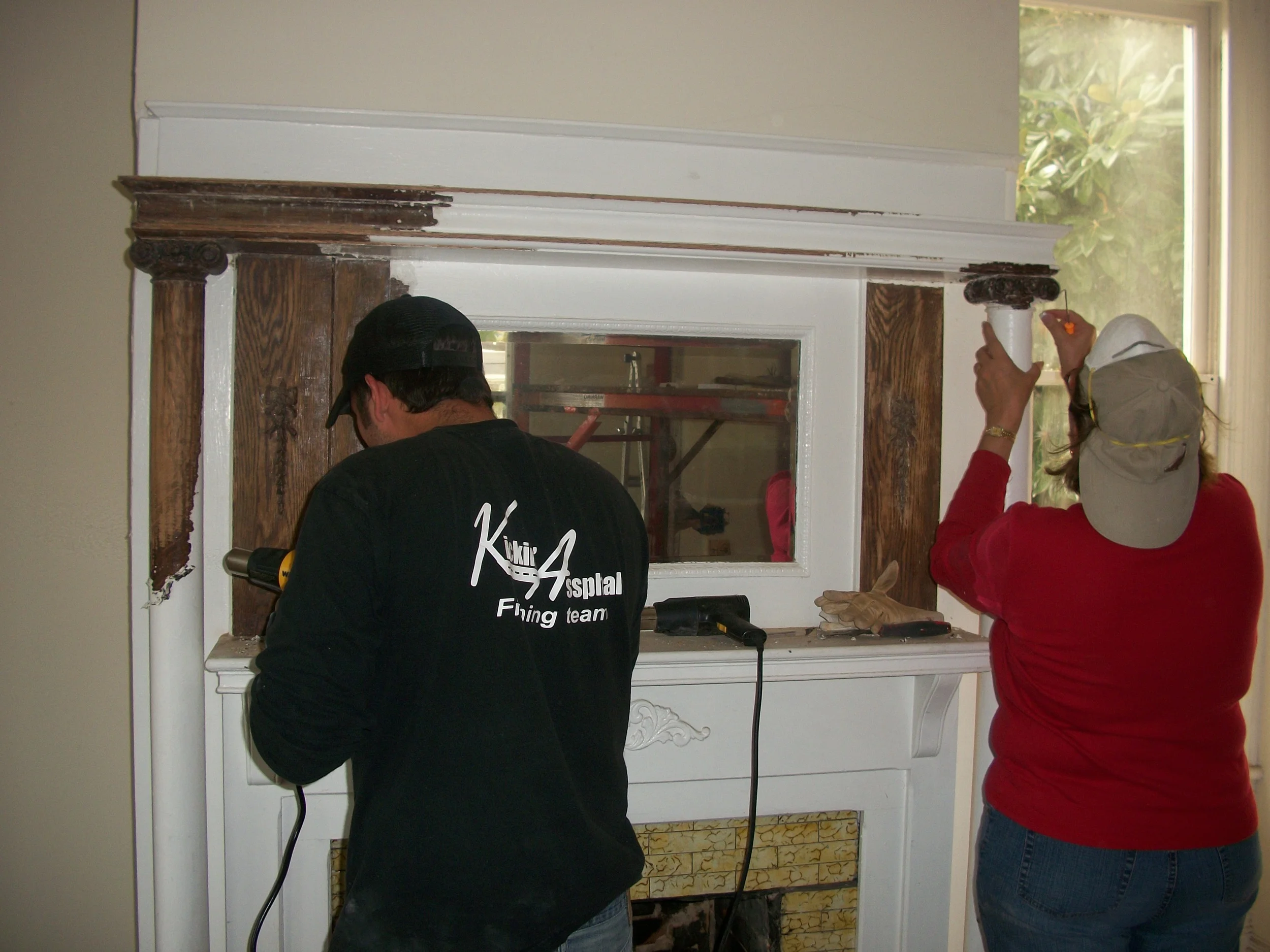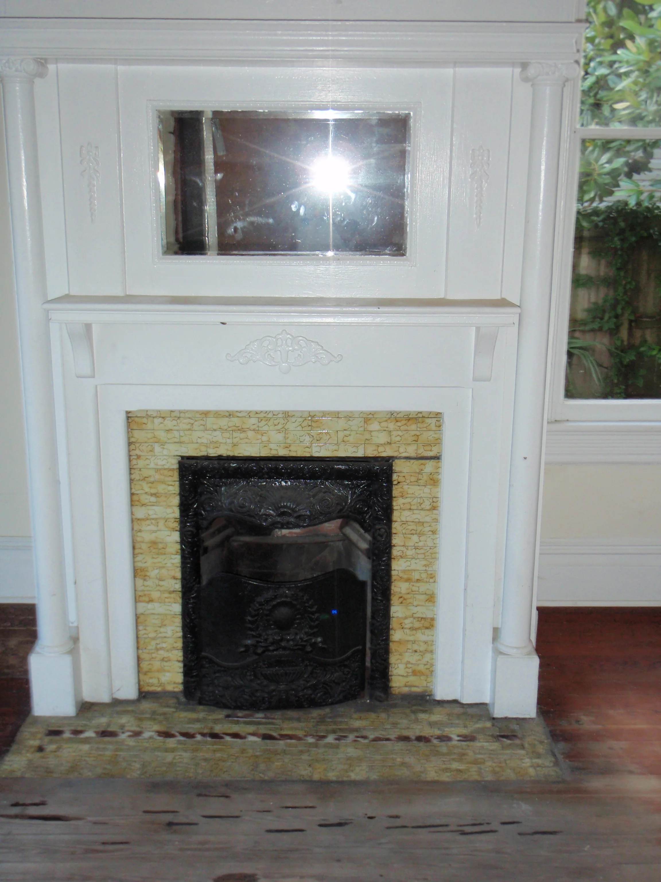 Here is what the fireplace looked like. I'll be honest, I did like it white, but we fell into the mode of reviving and saving the house so we wanted to restore it as much as possible. Removing paint from the fireplaces were definitely one of the the most difficult tasks, as there was so much detail with tiny nooks and crannies. My mother-in-law worked so hard on removing paint from all the detailed wood pieces with dental like tools.