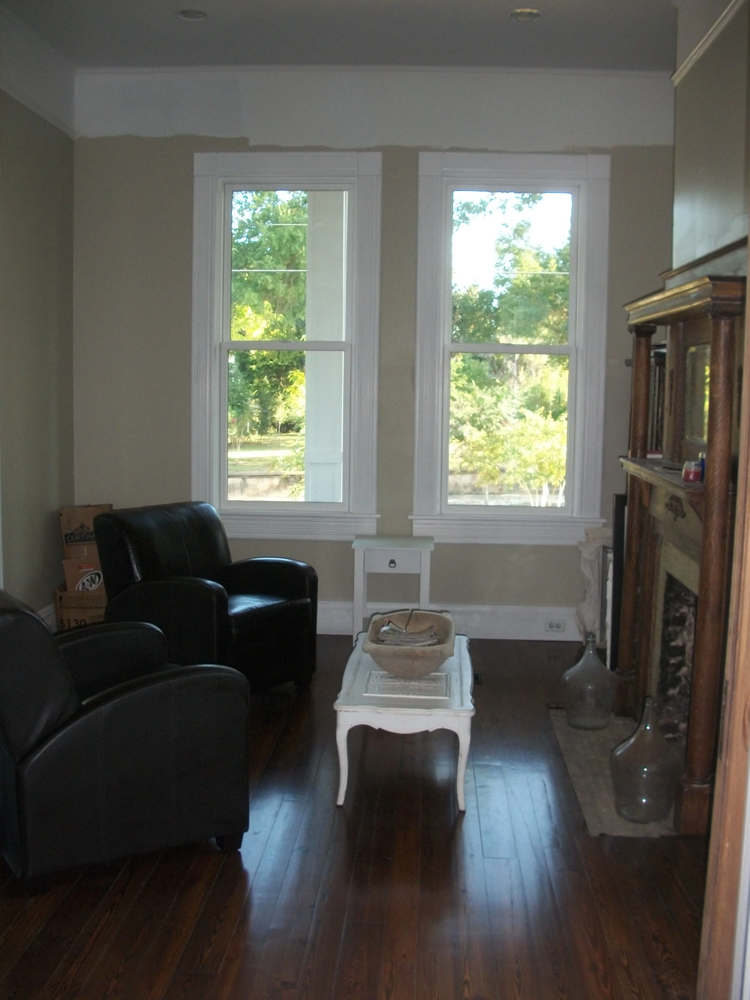 We made the decision to take out the french doors that opened to the front porch, as they were aluminum and not original. Instead we had two windows installed to match the existing original windows.