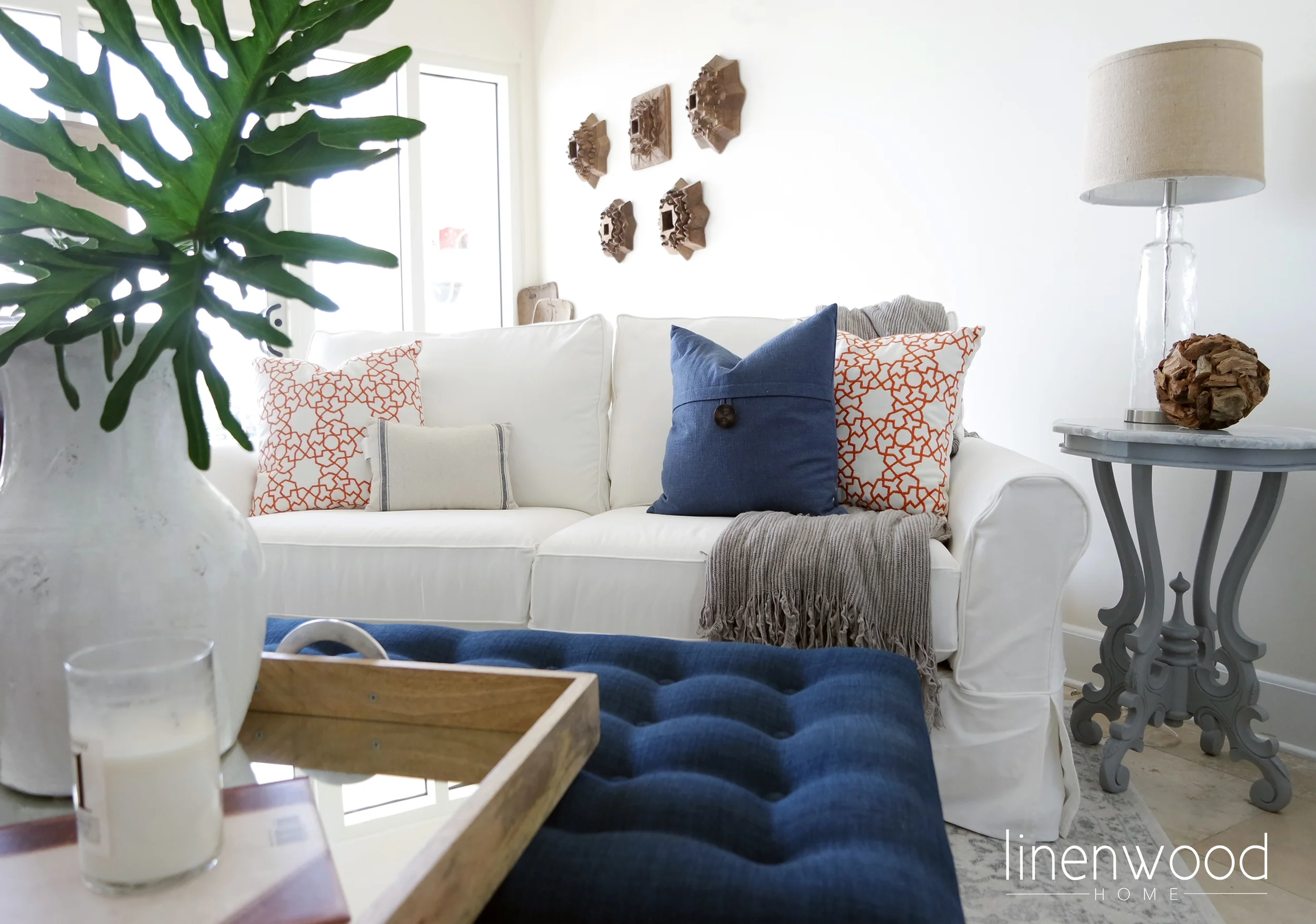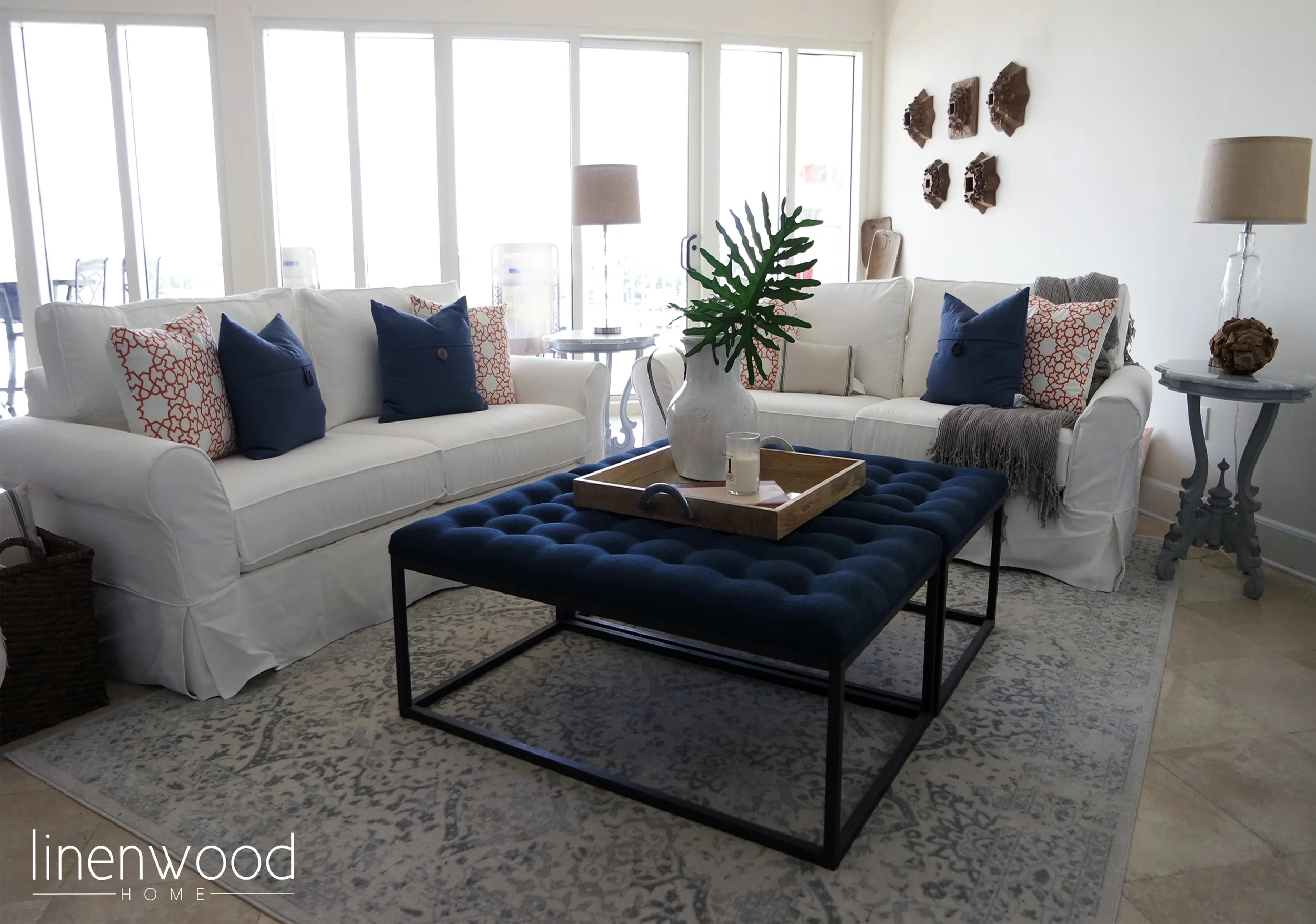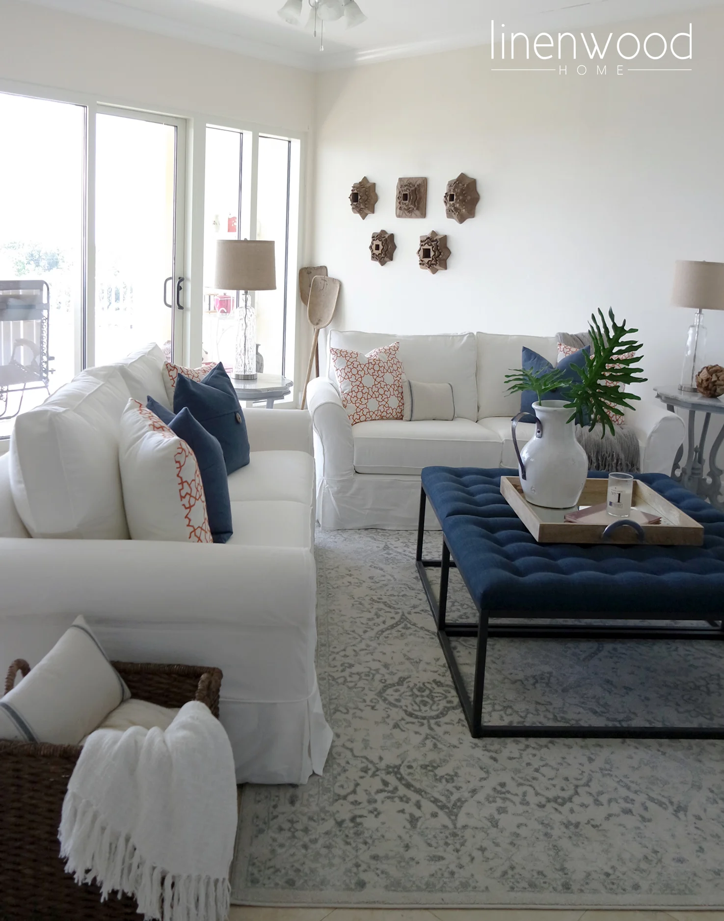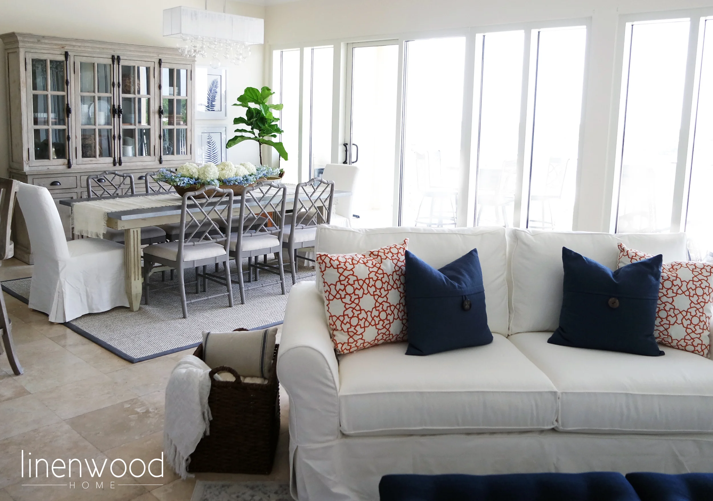 TGIF! It's been a whirlwind of a week for me with all this rain, my son starting Kindergarten, and establishing early morning routines! But today, I'm so excited to share with you the living space of my most recent Perdido Beach project. It's the complete opposite of the gloomy days we have had lately. Cheerful, bright, with small pops of color - just my style.